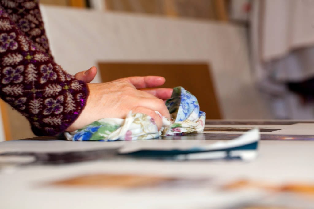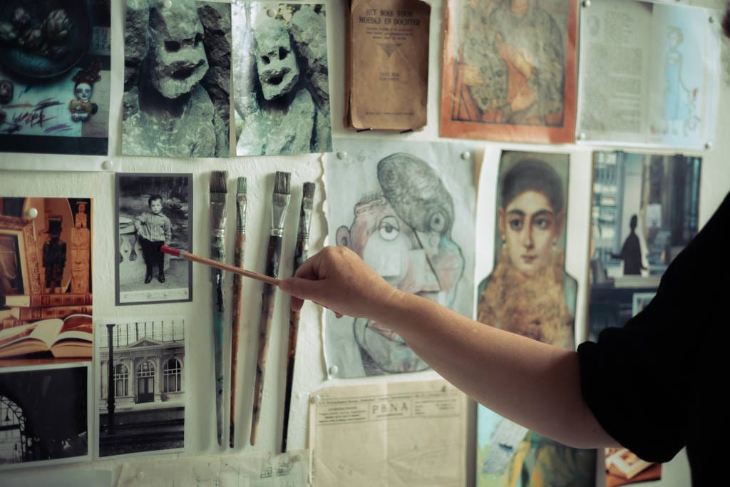 Een beeldend kunstenaar is iemand die een teruggetrokken bestaan leidt, dacht en hoopte ik. Een kluizenaar in een houten huisje midden in het bos. Ze tovert mooie prenten op smetteloos papier. In alle rust aan het werk, tijd en ruimte genoeg. Af en toe komt Roodkapje een mandje met broodjes en een thermosfles koffie brengen. En de wolf uit hetzelfde sprookje is, wat mij betreft, ook welkom. Vanuit de natuur creëren dat leek me een mooi perspectief.